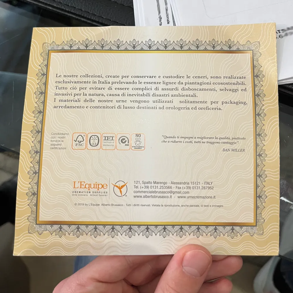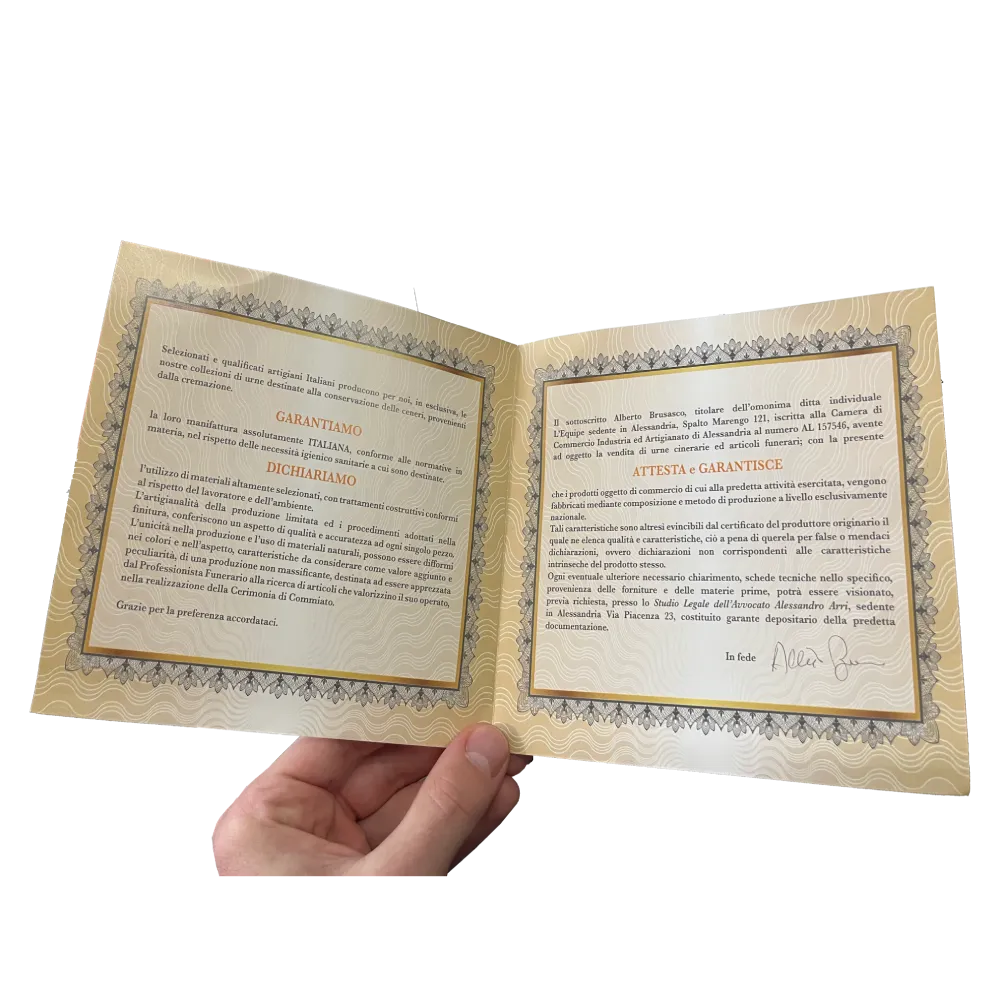 In caso di cremazione oltre al cofano si dovrà scegliere anche l’urna per contenere le ceneri dopo il rito.